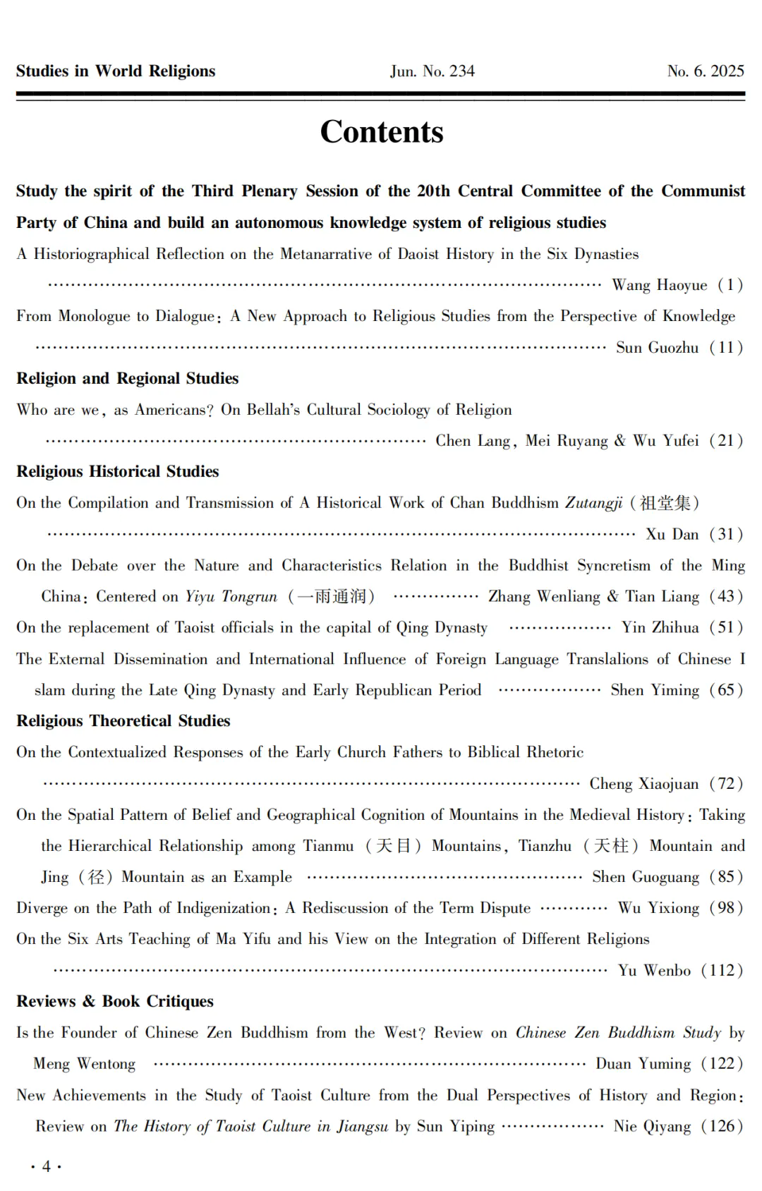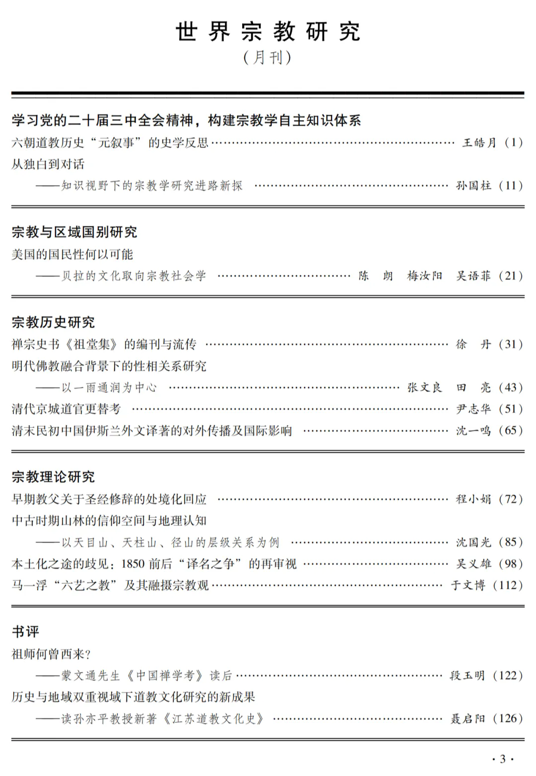 《世界宗教研究》2025年第6期目录